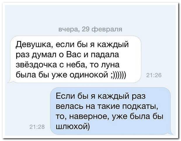 Почему? — Они не работают! На вопрос «как дела?» будьте готовы получить ответ «хорошо», на замечание «вы красивая» вы получите «я знаю», а на предложение «давай познакомимся» вы получите «у меня есть парень».”