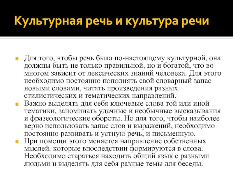 Из книг мы черпаем не только новые знания, но и пополняем совю речь новыми словами и выражениями. Чтобы они укрепились в нашем сознании, нужно читать вслух. Специалисты утверждают, что при чтении вслух у человека задействована не только зрительная память, но и слуховая, кинестетическая и речевая, поэтому информация воспринимается гораздо лучше. Чтение вслух вынуждает читателя быть более внимательным — не просто пробежаться глазами по тексту, чтобы уловить смысл, а буквально сделать акцент на каждом слове.
