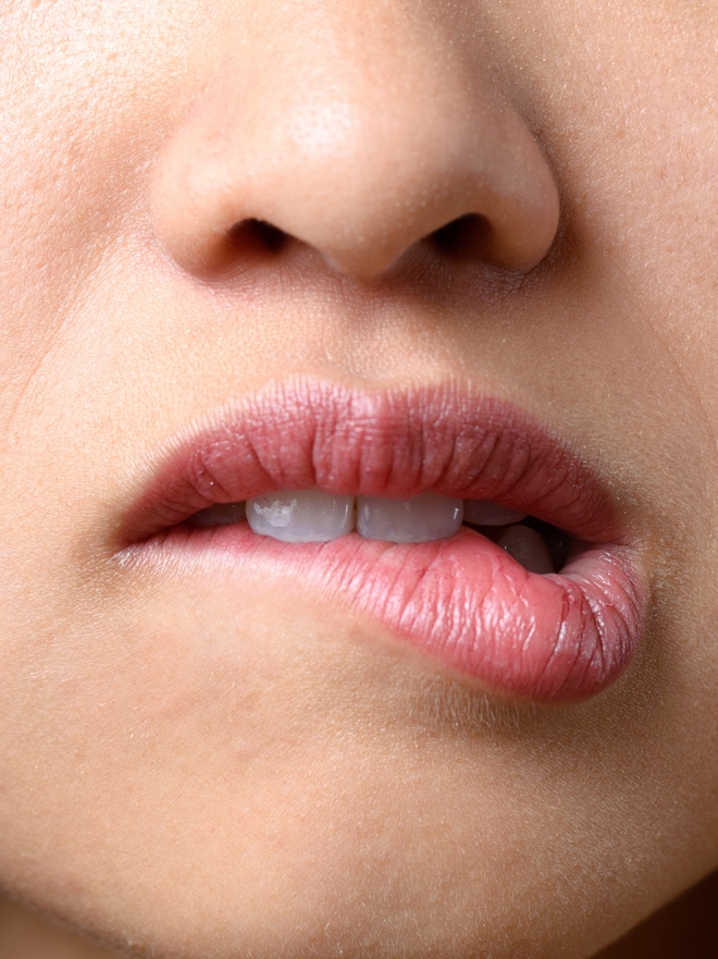 Наблюдается и такой вид поведения, как «самонападение». Это кусание губ, хруст костяшками пальцев, обгрызание ногтей. Стоит обратить внимание и на щеку партнера, когда он говорит, и если там усиленно работает мышца, возможно, он подавляет раздражение или скуку.