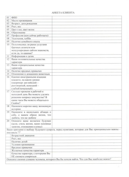 Анкета для знакомства с девушкой образец: пример для девушки для заполнения анкет и статусов