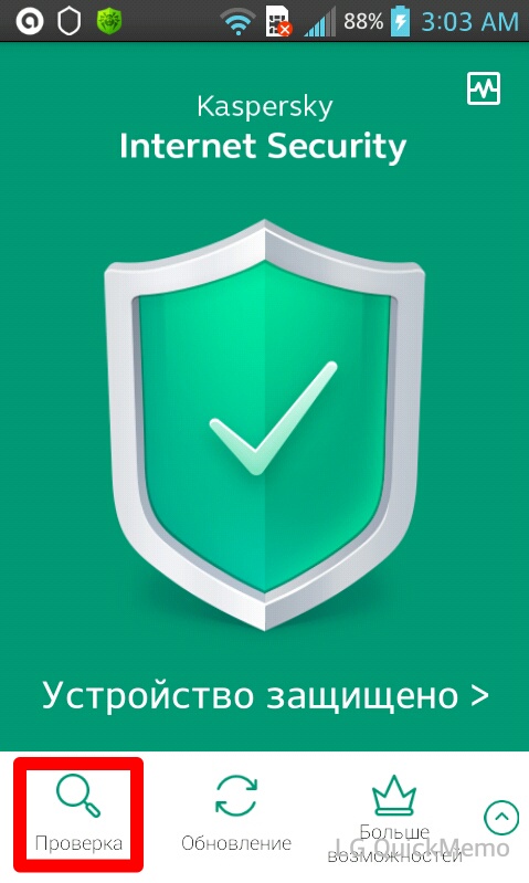 Если отбросить в сторону тот факт, что Kaspersky занимает много места во внутренней памяти, останутся одни достоинства. Это и постоянные обновления базы вирусов, и сканирование в режиме онлайн, и уровень защиты, и знакомый интерфейс без лишних вкладок.