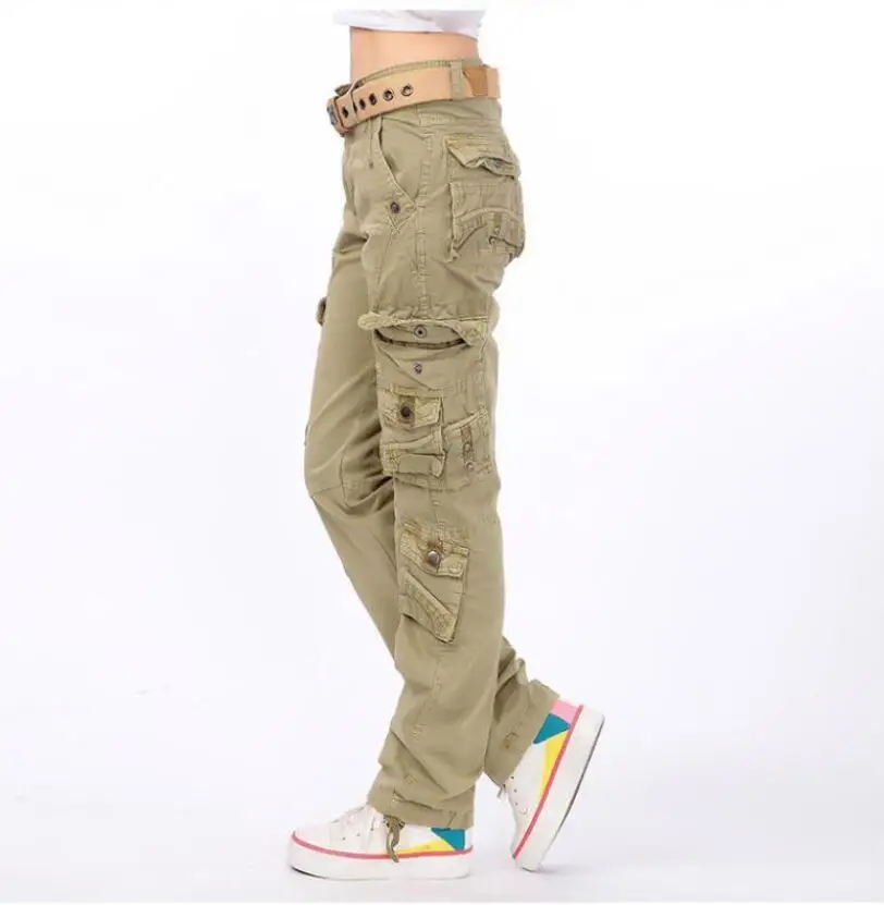 Также известные как армейские штаны, штаны-карго представляют собой полноразмерные штаны с одним или несколькими боковыми карманами примерно посередине штанин.