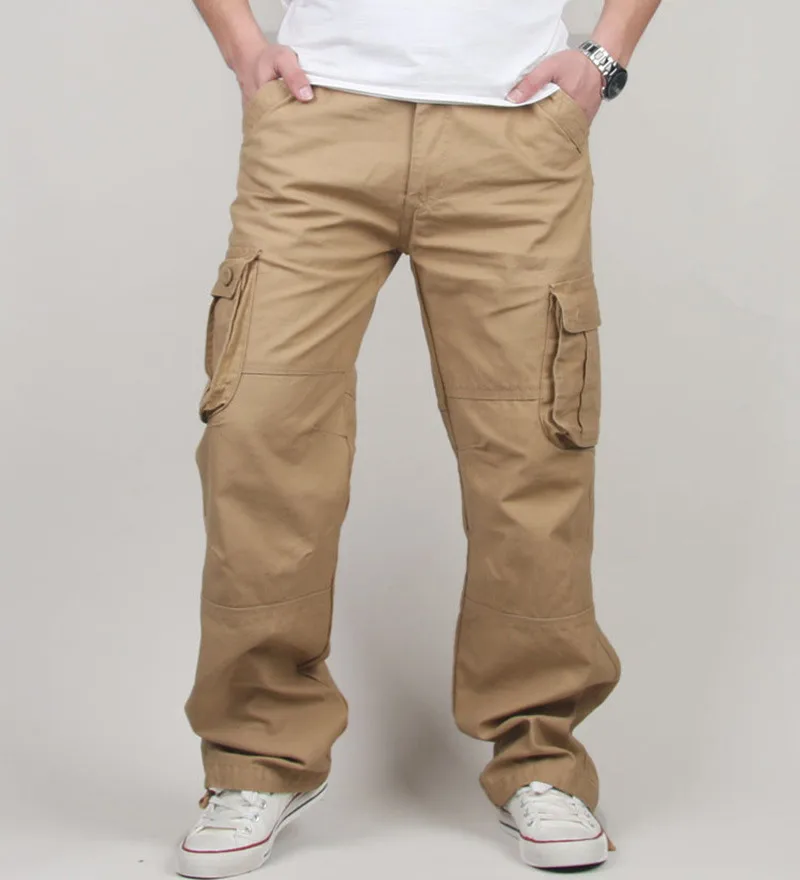 Брюки-карго, также называемые брюками-карго или армейскими брюками, представляют собой функциональные брюки свободного кроя, обеспечивающие свободу движений, особенно в области коленей и бедер.