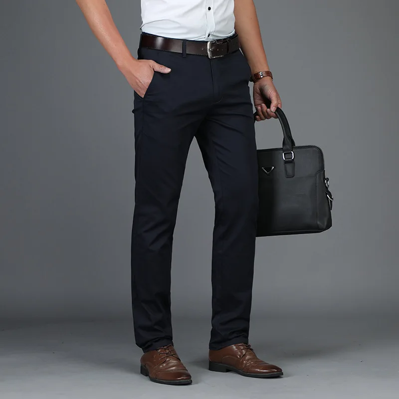 С парой синих мужских брюк вам не нужно беспокоиться о том, будет ли это осень, весна, лето, перед Днем труда или после Дня труда — вам просто нужно подобрать их к соответствующей рубашке, и вы будете готовы к работе. . Это также дает вам отличную альтернативу джинсам, улучшая качество ткани.