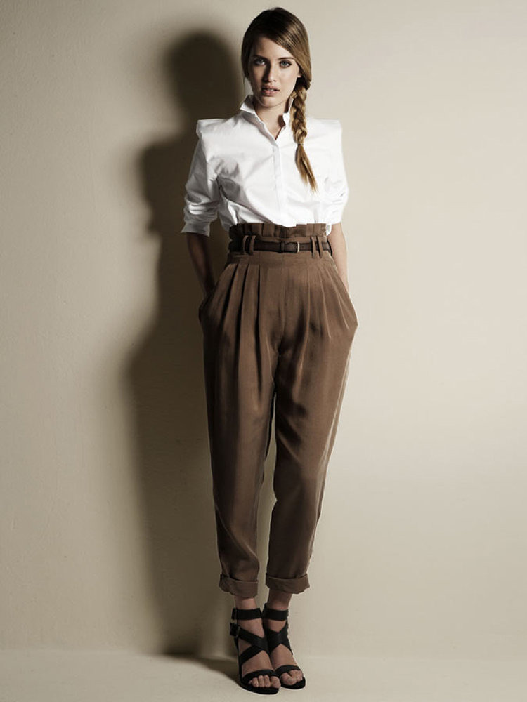 Но верх обязательно заправляют в брюки, чтобы выделить линию талии.