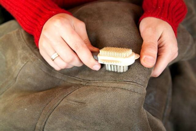 Возьмите щетку для замши и проведите по куртке, чтобы избавиться от грязи с поверхности. Это ослабит волокна и сделает его пушистым. Если есть пятна, слегка надавите во время чистки, но не слишком сильно, потому что материал чувствительный.