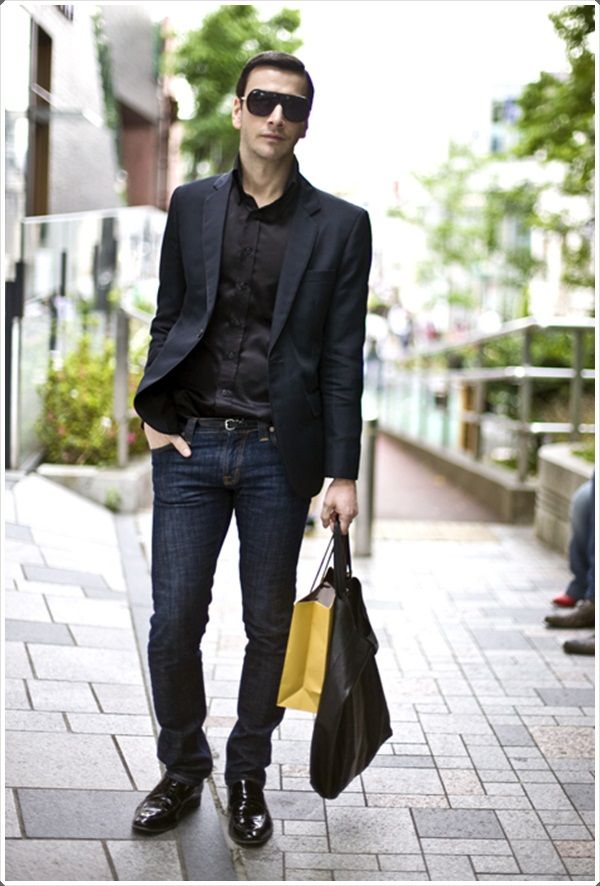 Также могут подойти черный цвет джинсов. Но, этот вариант подойдет не всем. Мужчинам с более темным цветом лица хорошо носить туфли с черными джинсами.