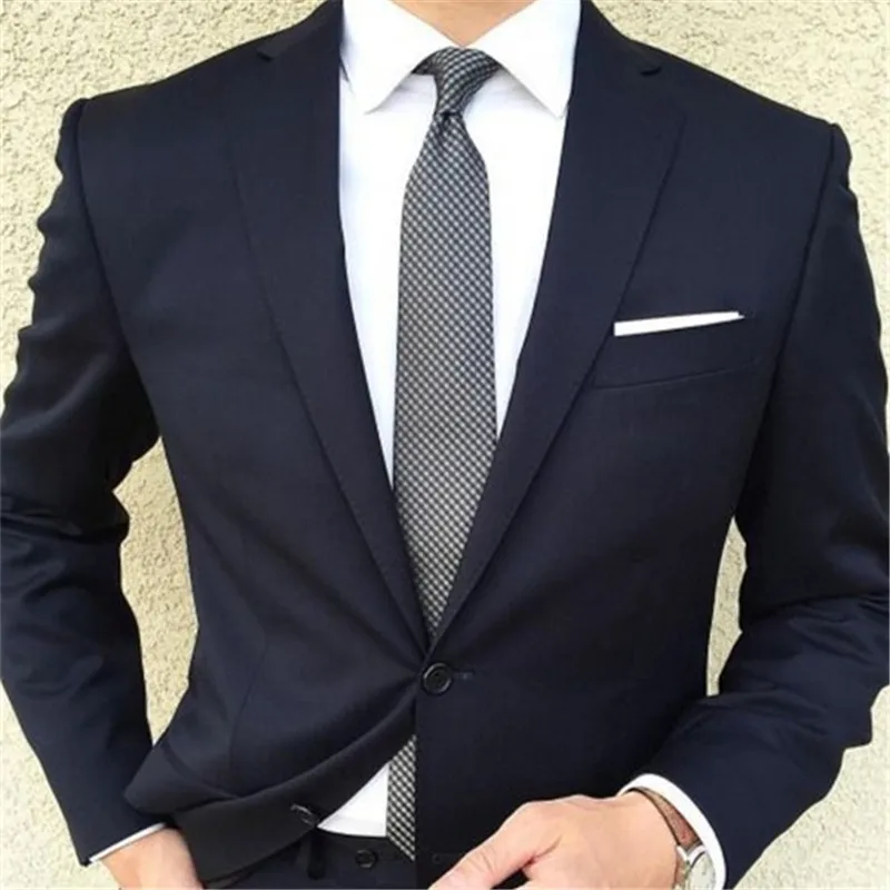 - Нагрудный платок . Здесь вам подойдет только однотонный белый цвет, желательно шелковый. Любая складка приемлема, и многие джентльмены выбирают преднамеренно небрежный стиль, такой как затяжка или гофрированная складка, чтобы добавить нотку контраста к резкому виду черного галстука.