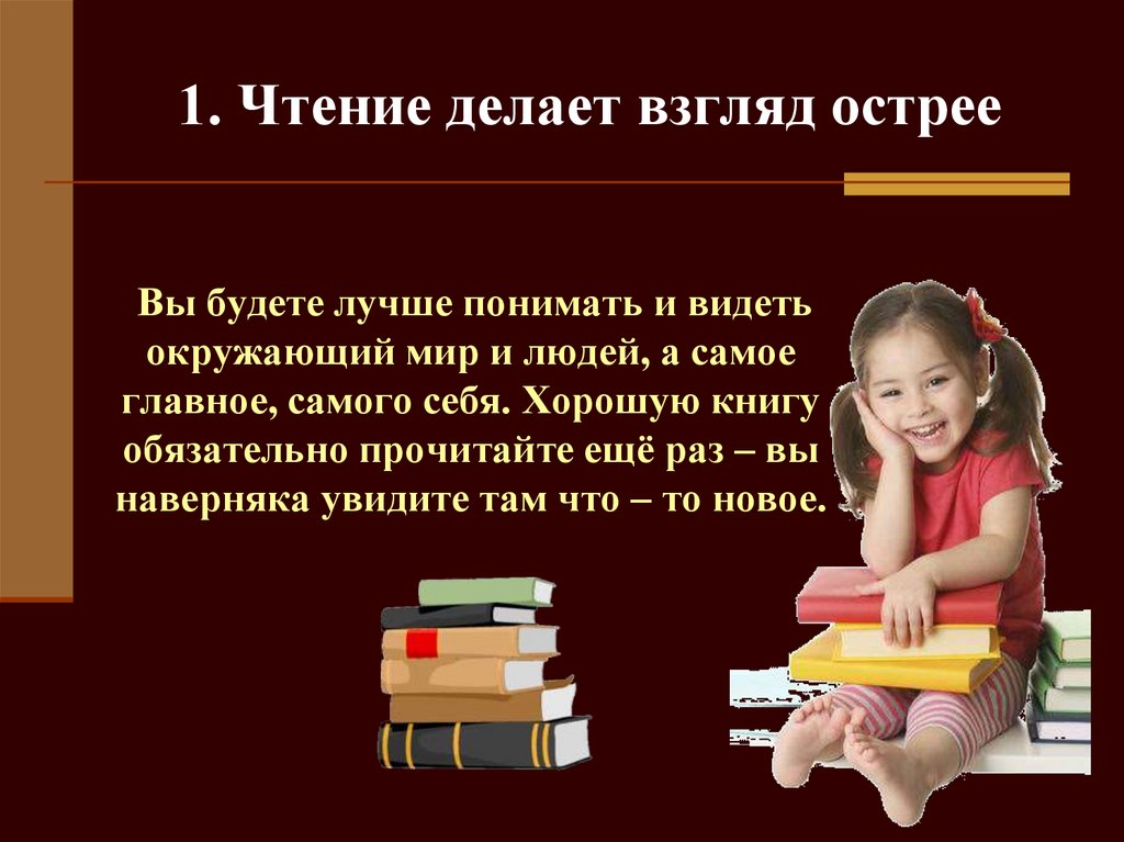 Чтение книг ведет к саморазвитию, долголетию. Их польза несомненна