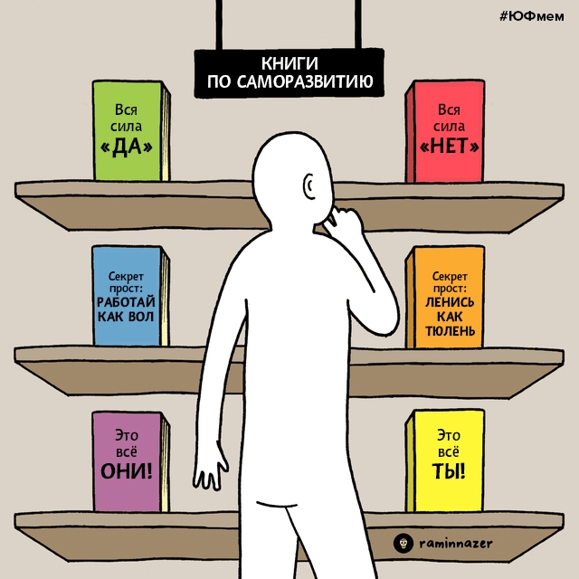 Поэтому человек должен регулярно читать книги по саморазвитию.