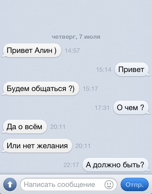 1. Каждое сообщение должно что-то предлагать телефон «отправлял» тексты и узнайте, сколько раз вы отправляли девушке сообщение типа «как дела?» или «Как дела?»