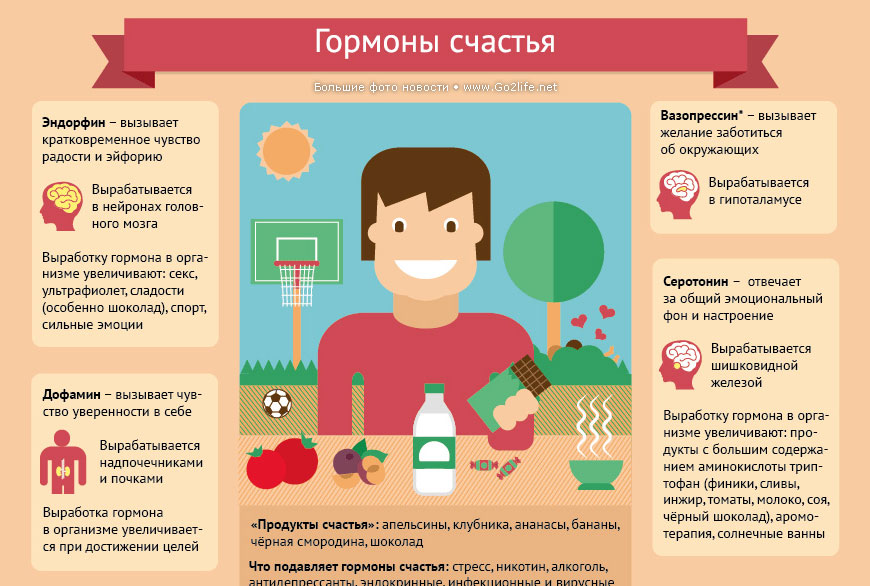 Окситоцин вызывает выброс эндорфинов — естественных опиатов в организме. Этот гормон считается главным виновником возникновения глубокого чувства интимности, эмоциональной целостности, безопасности, комфорта в любви. Как и окситоцин, вазопрессин стимулирует долгосрочные отношения и близость.