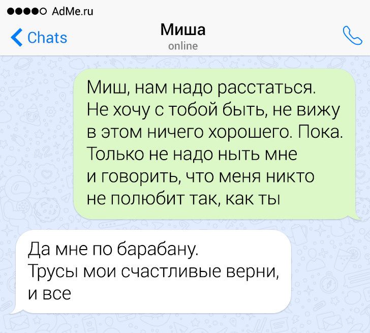 Во-первых, я хочу отметить, что эти примеры нужно говорить по телефону или лично, а не через текст. Все, что вы когда-либо скажете своему бывшему через текстовое сообщение, всегда будет менее эффективным, чем если бы вы сказали это по телефону или лично.
