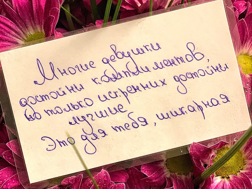 К каждому букету мы дарим открытку, в которой вы можете написать приятное послание для получателя цветов. Что же написать в открытке?