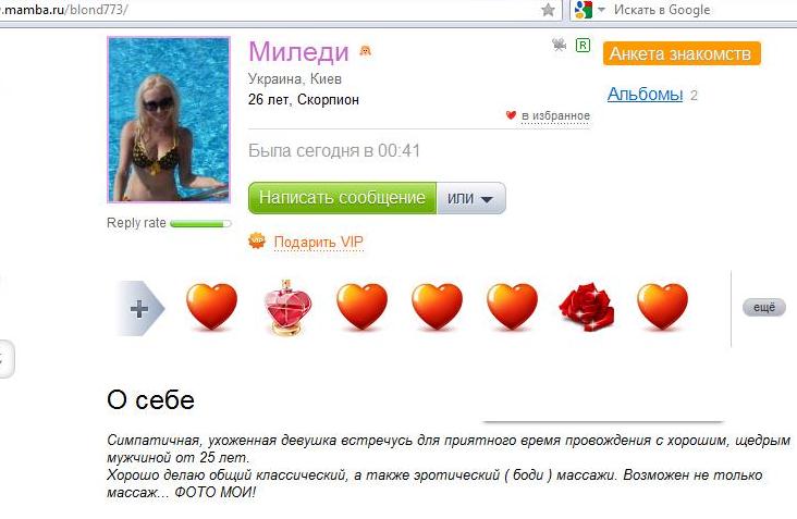 ru — может они пригодятся ещё кому-то). Итак, начинать общение лучше всего с вежливого комплимента. Для это сначала прочитайте ее анкету и можете написать (допустим, ее зовут Маша):