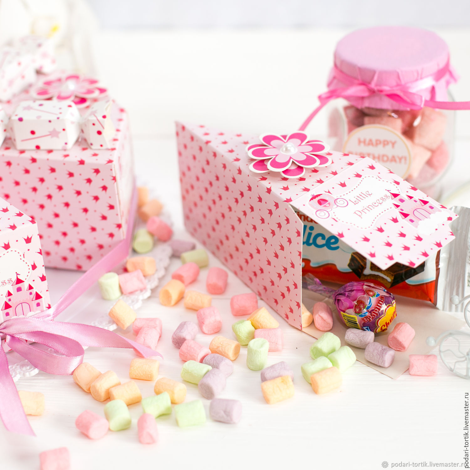Собственноручно удастся приготовить и сладкий презент. Это может быть необычный торт, украшенный персонажами любимых мультиков девочки, набор капкейков с разными вкусами, нежное печенье в баночке ручной работы или букет из сладостей и конфет.