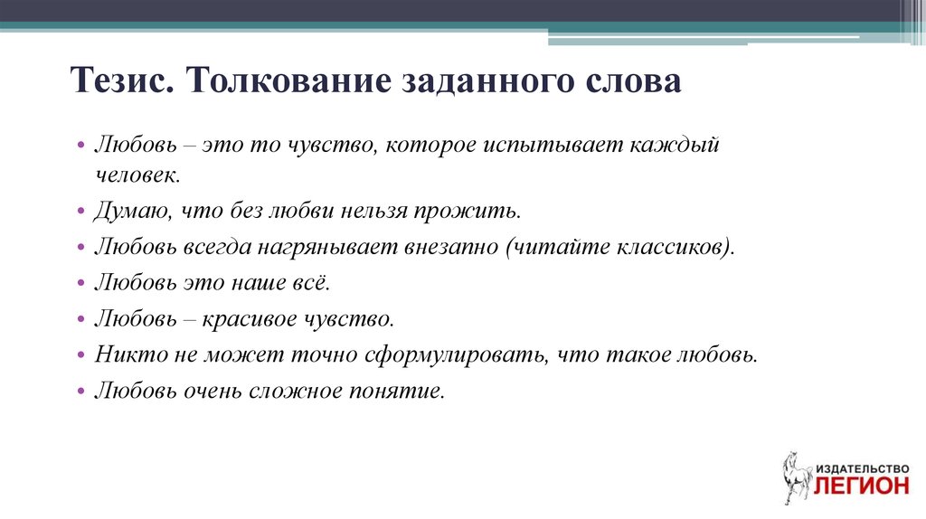 Любовь – это чувство, когда наши сердца начинают биться сильнее, а сами мы меняемся к лучшему. Недаром предки считали любовь даром богов. Рыцари посвящали жизнь служению прекрасной даме и считали это великим счастьем. О любви писали все мировые классики. Ею вдохновляются современные поэты и писатели. Говорить «я люблю тебя», значит подразумевать «ты никогда не умрёшь» – так считал Альбер Камю. Ведь любимый навсегда поселяется в сердце любящего и становится бессмертным.