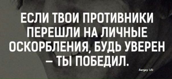 Если твои противники перешли на личные оскорбления, будь уверен