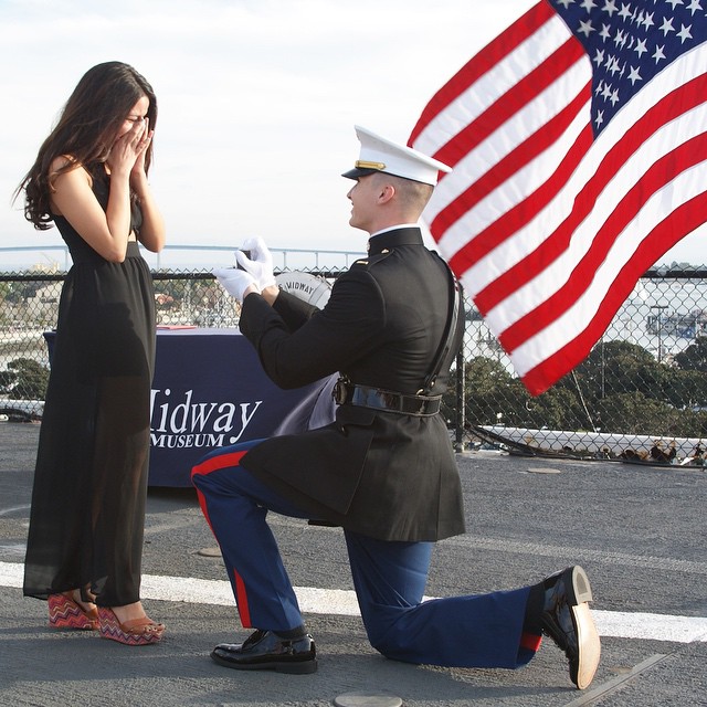 «Это был второй брак для меня, и я хотел убедиться, что в моем будущем не будет третьего. Мы с Марией были вместе добрых 10 лет, прежде чем я задал этот вопрос. Я уверен, что она была бы в порядке, просто живя вместе, как мы, но я хотел официально оформить нашу пару. Я хотел предложить ей «остаток совместной жизни», поэтому я написал стихотворение с предложением, чтобы отразить это. Нет, я не встал на одно колено, когда читал ей это… У меня есть трюковое колено, так что это было бы опасно… но все остальное было довольно традиционно. Предложение, кольцо и, конечно же, обязательное селфи после».