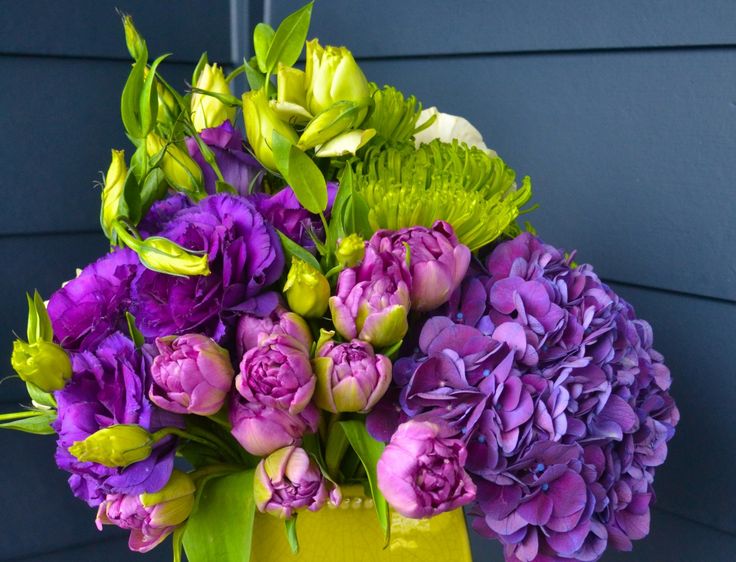 Тюльпан красив и самодостаточен, в силу своих особых химических характеристик плохо сочетается с другими растениями. Связки обычно дополняют воздушной зеленью и оригинальной упаковкой.