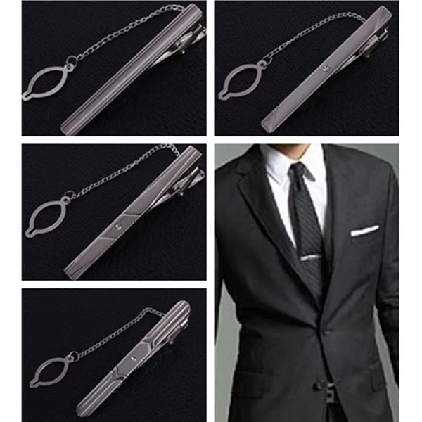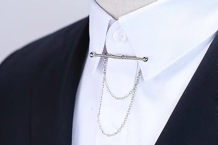 Цепочка для галстука используется для удержания галстука на месте. Металлический зажим прикрепляется к пуговице рубашки, а цепочка лежит поверх галстука. Обычно его носят поверх галстука.