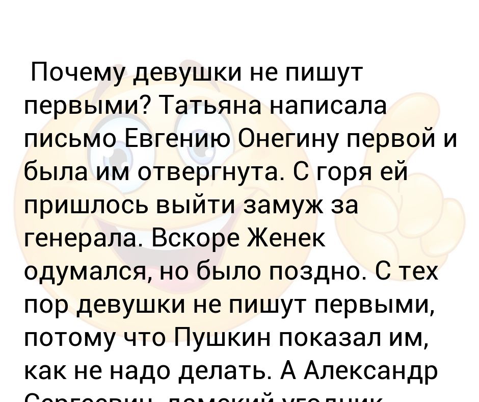 девушка не пишет первой, возникает лишь в начале совместного пути.