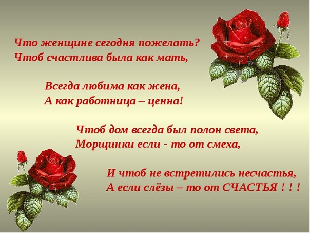 Женщины – удивительные существа, чуткие и внимательные. От всей души хочется поблагодарить Вас за это самое драгоценное внимание, потраченное время, которые Вы уделили, пожелать, чтоб Вас ценили, обожали, любили искренне, а самое-самое главное – уважали.