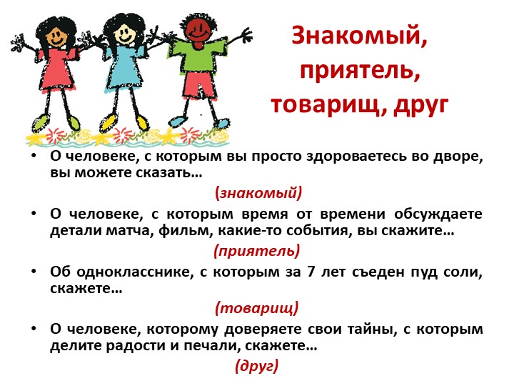 Однако, если вы из неблагополучной семьи, может быть трудно сказать, что такое хороший друг. Хороший друг — это тот, кто принимает вас таким, какой вы есть, и призывает вас стать лучше.Они не замечают ошибок, но также требуют от вас ответственности за них. Взамен вы отвечаете тем же. В идеале это человек, с которым вы можете установить связь и поделиться секретами, потому что доверяете ему.