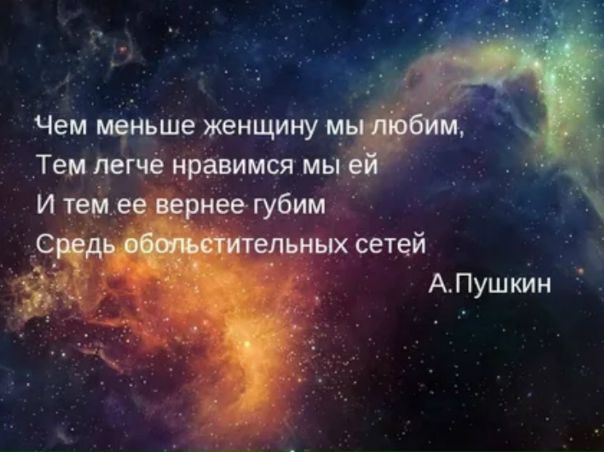 Помните пушкинские строки: “Чем меньше женщину мы любим, тем легче нравимся мы ей”?