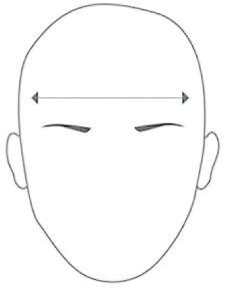 - Лоб: Измерьте расстояние по всему лицу от вершины одной надбровной дуги до вершины противоположной дуги.