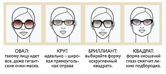 Не выбирайте форму очков, которая точно повторяет форму лица.