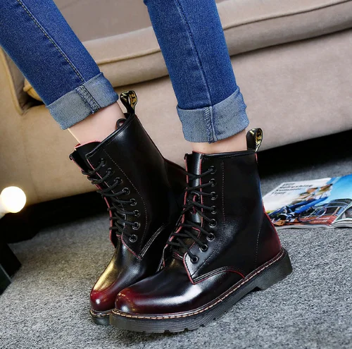 - Лакированные. Модные ботинки 2023-2024 годов из лакированной кожи гарантированно привлекут внимание. Выбирай классический черный цвет или насыщенные яркие оттенки.