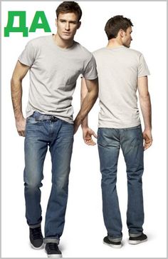 Та же история с брюками. Хотя в брюки майку лучше не заправлять — лучше в джинсы. Не смей, даже не думай заправлять майку в скинни или любые панталоны узкого фасона. Ничего не должно стягиваться и утягиваться — обычные джинсы классического фасона, как у первых жертв американской золотой лихорадки.