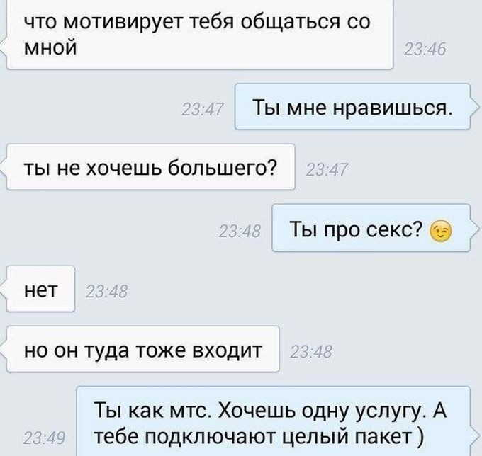 - Вариант Продолжить общение на сексуальную тему — попросите перечислить ваши любимые позы, тип предпочитаемых девушек, наиболее возбуждающие части тела; Ответы позволят определить, стоит ли переходить на сближение.
