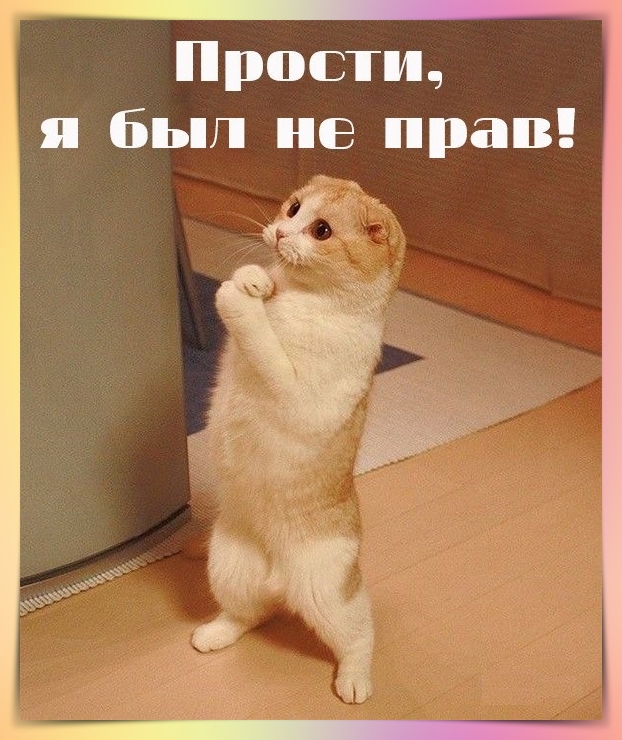 КопироватьПостоянная ссылкаВ закладкиМой любимый! Я виновата перед тобой. Очень злюсь на себя за свои глупости. Всю ночь не спала и думала об этом. Я очень сожалею. Извини меня, пожалуйста! Ты самый умный, самый великодушный. Ты же сам уже понимаешь, что это не со зла. Извини, любимый мой! Мне так стыдно и так плохо!