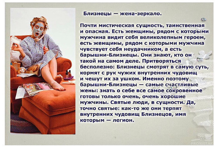 17. женщина должна иметь чувство юмора. Уставший домохозяин после дневных трудов именно так развлекается со своей женой. Причём сфера выражения эмоций — это чисто женская стихия.