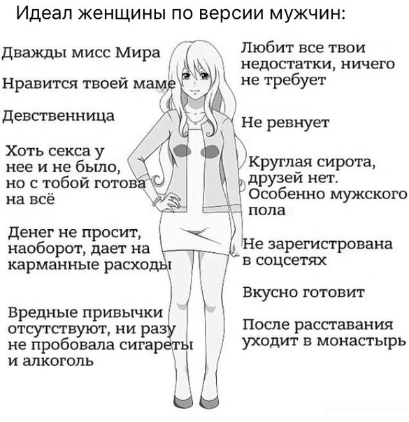 Качества идеальной женщины и качества идеального мужчины: Назовите качества идеальной женщины и качества идеального мужчины. Не менее 7. Спасибо за