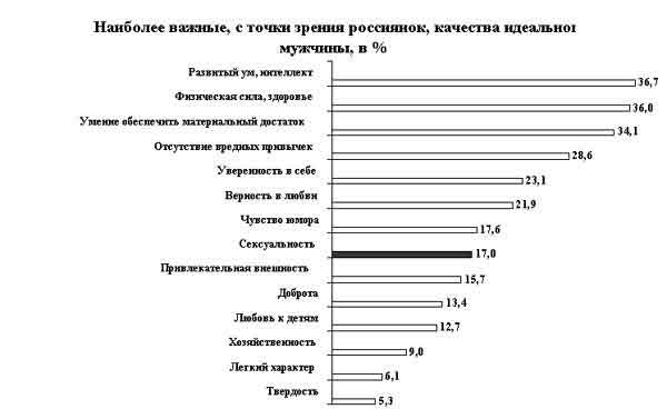 То же самое тестирование выявило и другое мужское пристрастие — сильная половина отчаянно хочет получить от женщины… Нет, не секса и не борща! А нежности! 46% поставили именно это качество на первое место, на втором месте расположился женский ум, на третьем — чувство юмора.