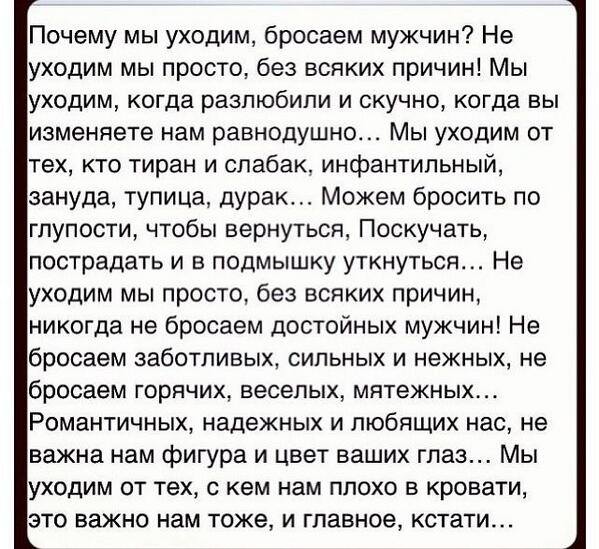 Почему мужчины уходят от любимых женщин, может быть множество причин.