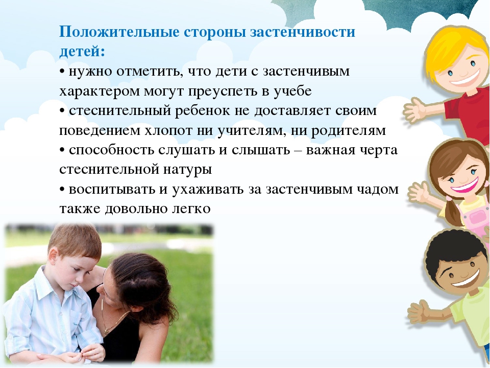 Самооценка таких детей занижена. Они излишне самокритичны к себе, но совершенно не способны к критике других. Когда их хвалят, они еще сильнее стесняются, особенно если хвалят публично.