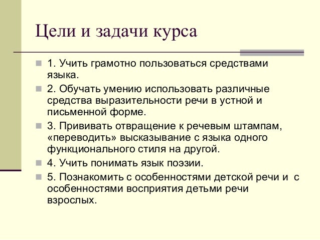 В первую очередь педагог предлагает отточить четкое произношение − дикцию, после приступать к работе над техникой и содержанием, в завершение определяет направления по развитию речи, обогащению словарного запаса. Обучение заканчивается на постановке логичного, связного произношения.