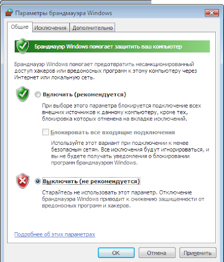 Рис. 7. Устаревшая firewall.cpl