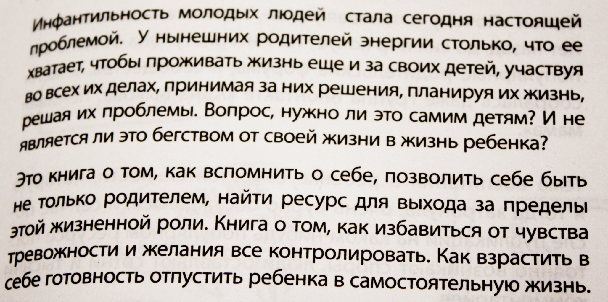 Хелле не понимает, что чувство вины отступит, если она научится терпеть его, не удовлетворяя чужие потребности. Когда она в очередной раз откажется сидеть с детьми и пойдет гулять, чтобы набраться энергии, ее уже не будет донимать это гнетущее чувство, и пятничный вечер принесет море удовольствий.