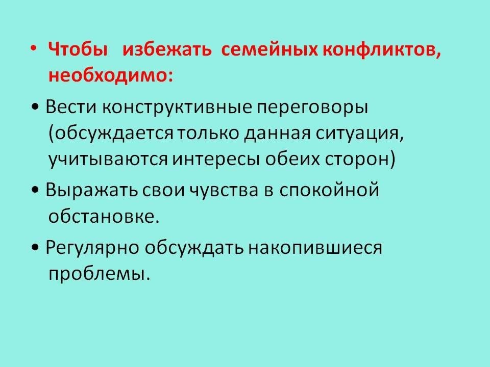 Чтобы избежать назревающего семейного конфликта, есть ряд правил:
