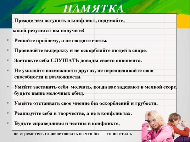 Важно, любую ссору или спор решать спокойно и уважительно, избегая крика и оскорблений.