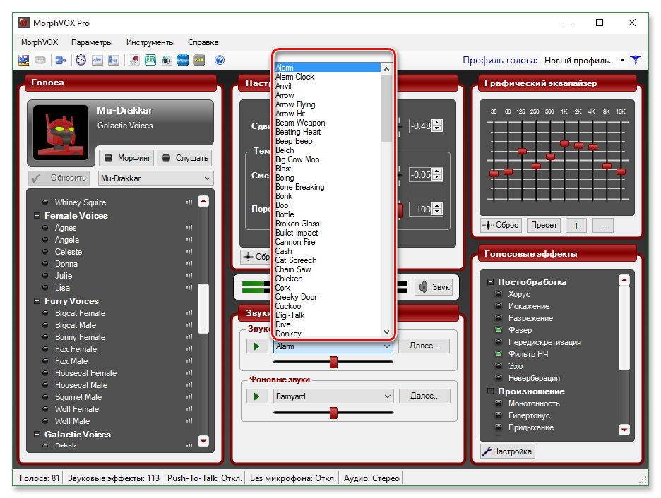 - 125+ голосовых эффектов для смены голоса одним щелчком мыши в режиме реального времени.