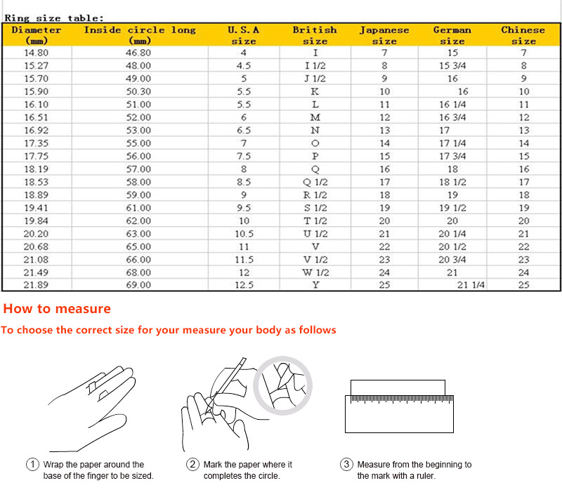 Представленная сетка размеров будет особенно полезной при заказе ювелирных изделий заграницей. Чтобы воспользоваться таблицей, необходимо замерить окружность пальца и учесть, что данные представлены в миллиметрах. Далее соотнесите полученные показатели с тем, что в таблице и страной приобретения изделия.