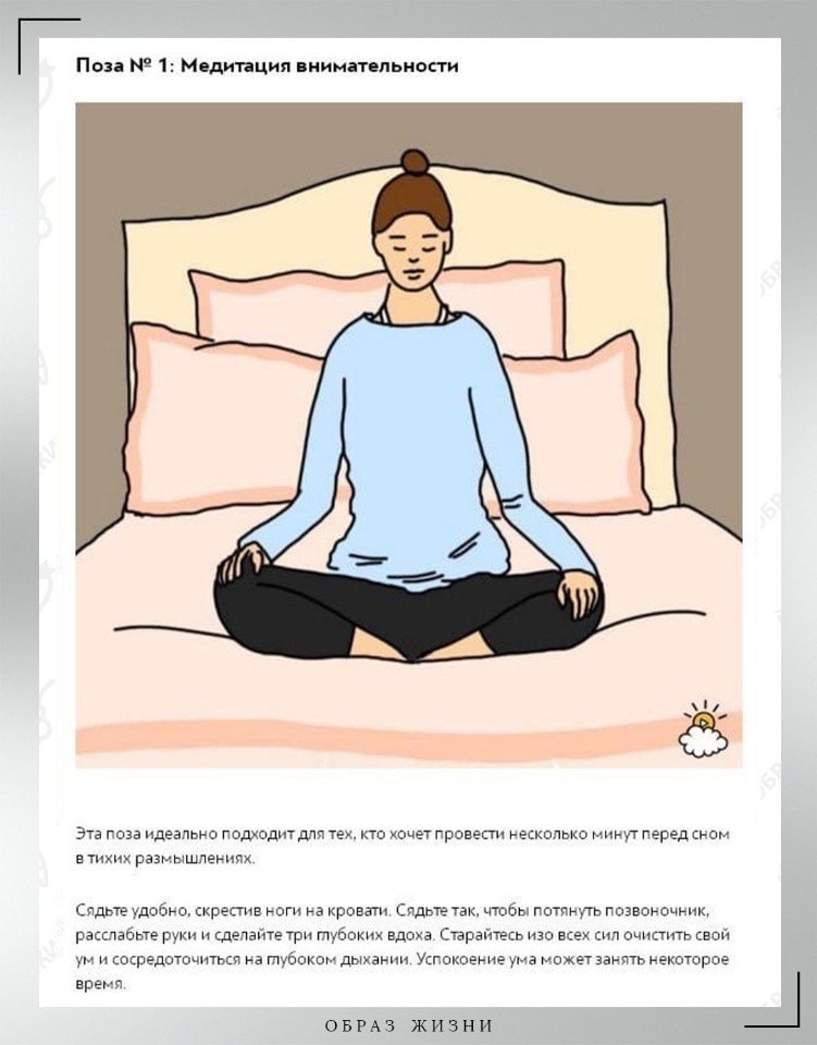Утренняя медитация даст вам заряд на весь день. Вечерняя медитация поможет вам прийти в умиротворенное состояние в конце дня. Вечерняя медитация из этой статьи поможет расслабиться перед сном.