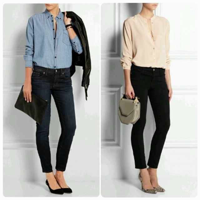 рубашка или блузка. Выберите стиль, который подходит вашему типу фигуры и отражает ваш стиль. - Выберите подходящие джинсы: Джинсы бывают разных стилей и цветов. Выберите фасон и цвет, которые подходят вашему типу фигуры и хорошо сочетаются с выбранной рубашкой.