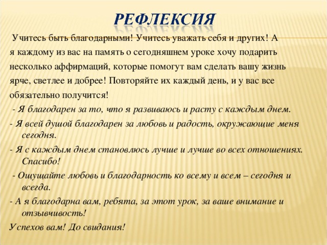 Чтобы научиться ценить себя, с сегодняшнего дня начните записывать в блокнот все свои достижения за день. Неважно насколько они большие или маленькие, главное, чтобы они были важны для вас. Даже если это пусть и маленькая, но победа, смело заносите ее в список. Сделали зарядку, совершили утреннюю пробежку, красиво выглядите, убрались в квартире, приготовили еду, позанимались английским, выполнили чью-то просьбу, сделали доброе дело, поблагодарили за помощь, — вам есть чем гордиться. Ведь даже такие повседневные дела уже характеризуют вас, как доброго, отзывчивого, сильного, ответственного, благодарного и хорошего человека. Ведите счет исключительно тем событиям, которые вызывают приятные эмоции. Радуйтесь себе, радуйтесь своим делам.